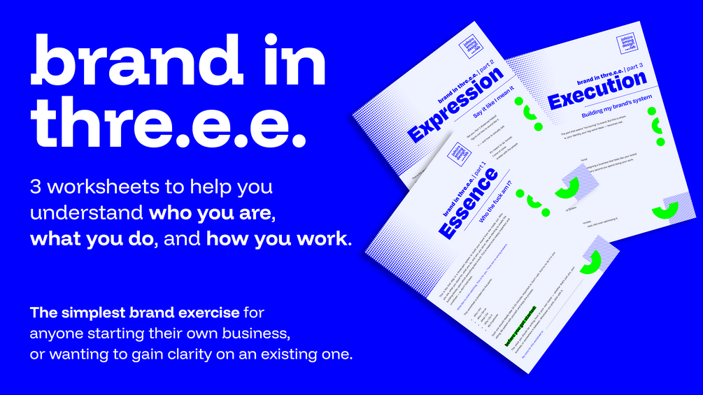 Brand in Thre.e.e. is a set of three interactive worksheets designed to help you build a clear, usable brand from the inside out. I created them after countless hours spent with clients, unpacking and understanding their brands alongside them. This is a self-paced system that you can use WITHOUT hiring anyone just yet... and each worksheet takes only 30 minutes to fill out.